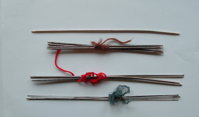 Surviving needles in museums across the North of England, show every variation; blunt and pointy, curved and straight. Although rarely, of course, flat ended.
